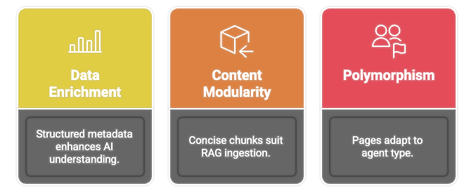 2. Inhaltsmodularität: Präzise und „chunkbare“ Antworten eignen sich perfekt für die von diesen Agenten verwendeten Einnahmeprozesse (RAG), die von RAG-Aufnahmeprozessen abgerufen werden. Der Inhalt sollte mit autonomen und wiederverwendbaren Blöcken ausgelegt sein.