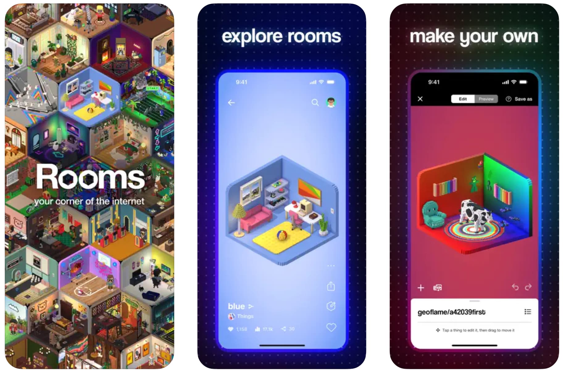 Das Beste habe ich mir zum Schluss aufgehoben: Zimmer. „Zimmer“ ist ein – ehrlich gesagt bin ich mir nicht sicher, was es ist. Ist es ein Spiel? Handelt es sich um eine Innenarchitektur-App? Sind es Sims ohne die Sims? Die Entwickler sagen: „Entfesseln Sie Ihren inneren Schöpfer und betreten Sie mit Rooms die Welt der 3D-Erstellung.“ Mit der App können Sie im Wesentlichen Ihren Traumraum gestalten, sei es eine Hinterhofoase, eine ausgefeilte Männerhöhle oder gleich eine ganze Menge davon – einen Fluchtraum. In der „Dinge-Bibliothek“ befinden sich über 5.000 3D-Elemente, die Sie verwenden oder bearbeiten oder Ihre eigenen erstellen können. Es gibt Tausende von benutzergenerierten Räumen zum Ausprobieren, und Sie können jeden davon nach Ihren Wünschen neu gestalten. Ist das also das neue Minecraft? Bin ich hier über das nächste große Ding gestolpert? Ich schaue mir das auf jeden Fall dieses Wochenende an.
