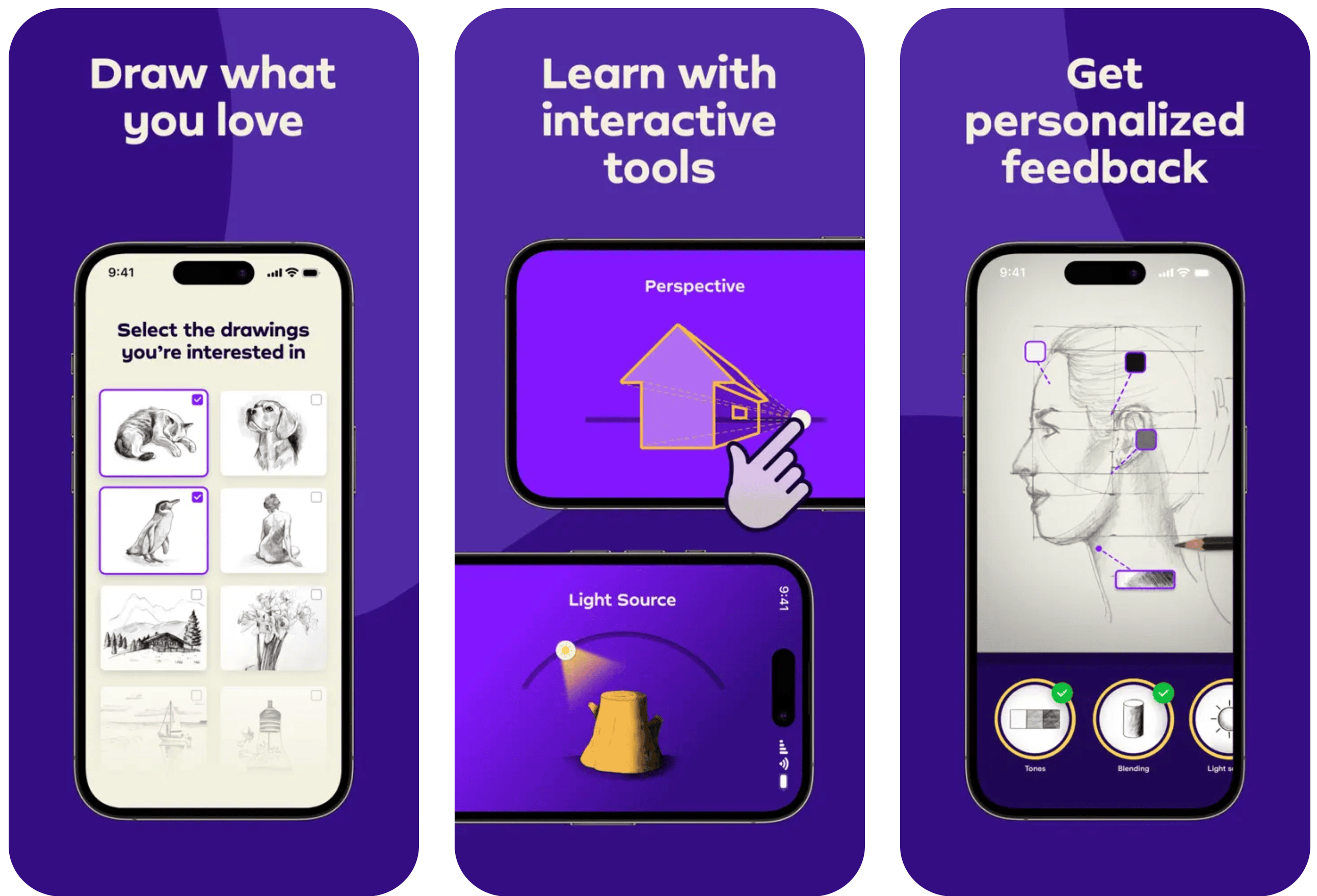 Diese App ist in der Version 1.2 und hat über 28.000 Bewertungen, falls Ihnen das etwas sagt. Simply Draw ist eine App, die Ihnen – Sie haben es erraten – das Zeichnen beibringt. Sie erstellen eine individuelle Lernreise, um sicherzustellen, dass Sie nur das zeichnen, was Sie interessiert, und folgen dann leicht verständlichen Video-Tutorials von professionellen Künstlern und Lehrern. Sie können in Ihrem eigenen Tempo und in Ihrer eigenen Zeit zeichnen, neue Fähigkeiten wie 3D-Objekte und Lichtquellenschattierung erlernen und meistern und Feedback zu Ihrer Arbeit erhalten. Die Idee dabei ist, dass Sie Ihre Zeichnungen auf Papier anfertigen, aber ich kann mir vorstellen, dass Sie ein zweites iOS-Gerät wie ein iPad oder iPhone verwenden können. Es gibt monatliche Abonnements, die von 9 bis 120 US-Dollar pro Monat reichen, aber wenn Sie darüber hinwegkommen können, ist dies eine beeindruckende und scheinbar sehr hilfreiche App für aufstrebende Künstler.