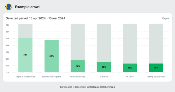 • Identifizieren nicht gecrawlter Seiten: Identifiziert Seiten, die der Googlebot aufgrund von Problemen wie langsamen Ladezeiten, schlechter interner Verlinkung oder unattraktiven Inhalten übersieht, und gibt Ihnen klare Einblicke in notwendige Verbesserungen.