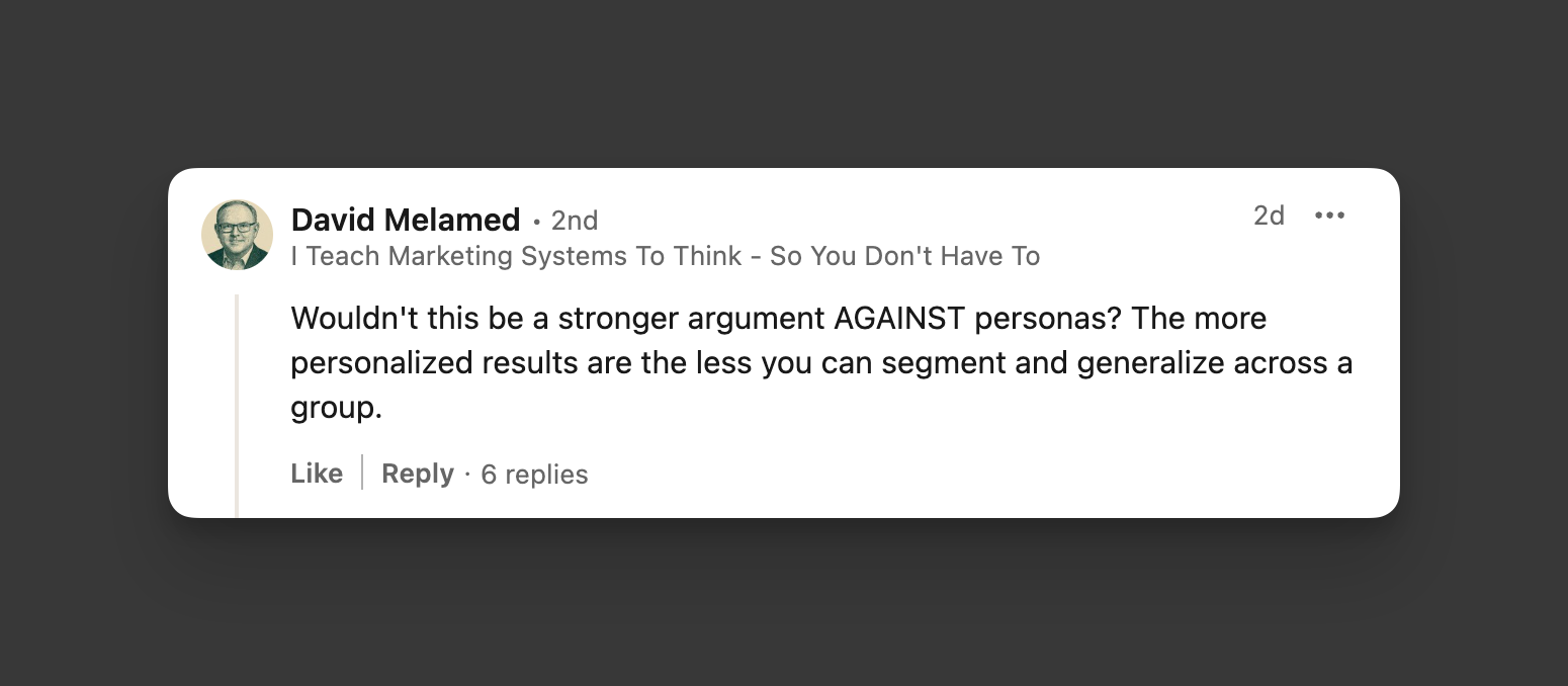 Bevor wir jedoch eintauchen, möchte ich ein paar bemerkenswerte Perspektiven zu Suchpersonas teilen, die sich in diesem LinkedIn -Thread unterhalten: