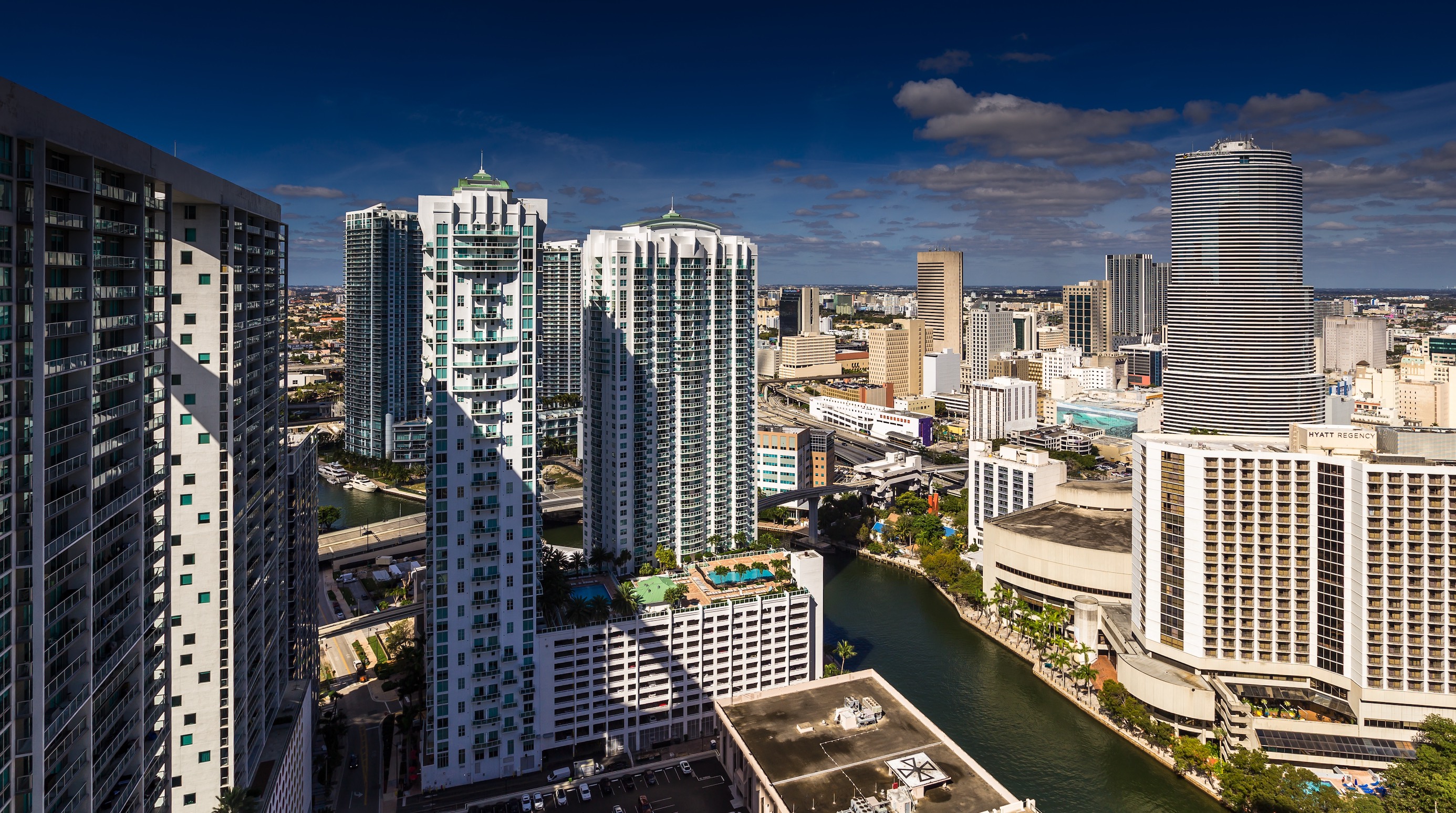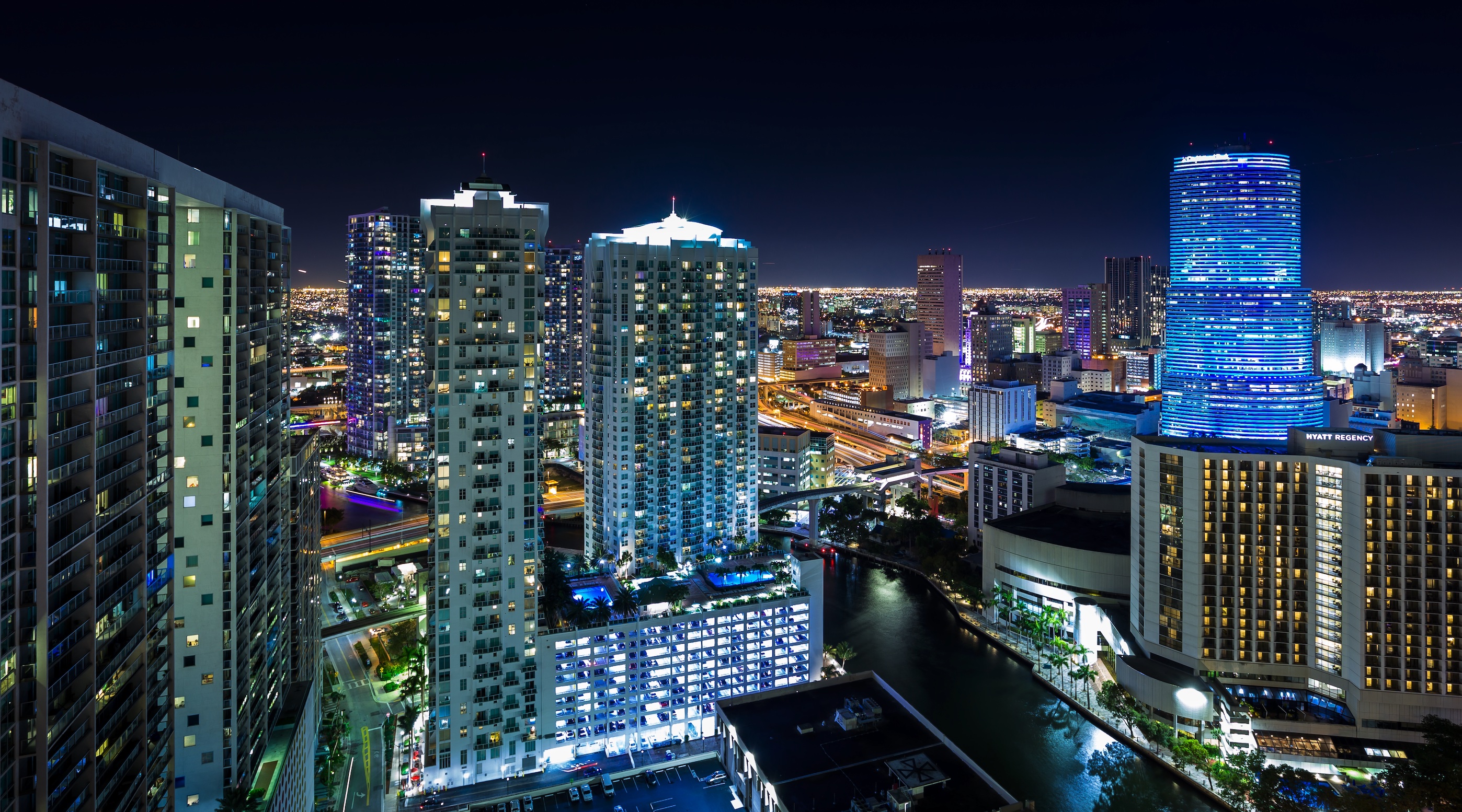 Dynamisches Hintergrundbild der Skyline von Miami, das sich im Laufe des Tages ändert