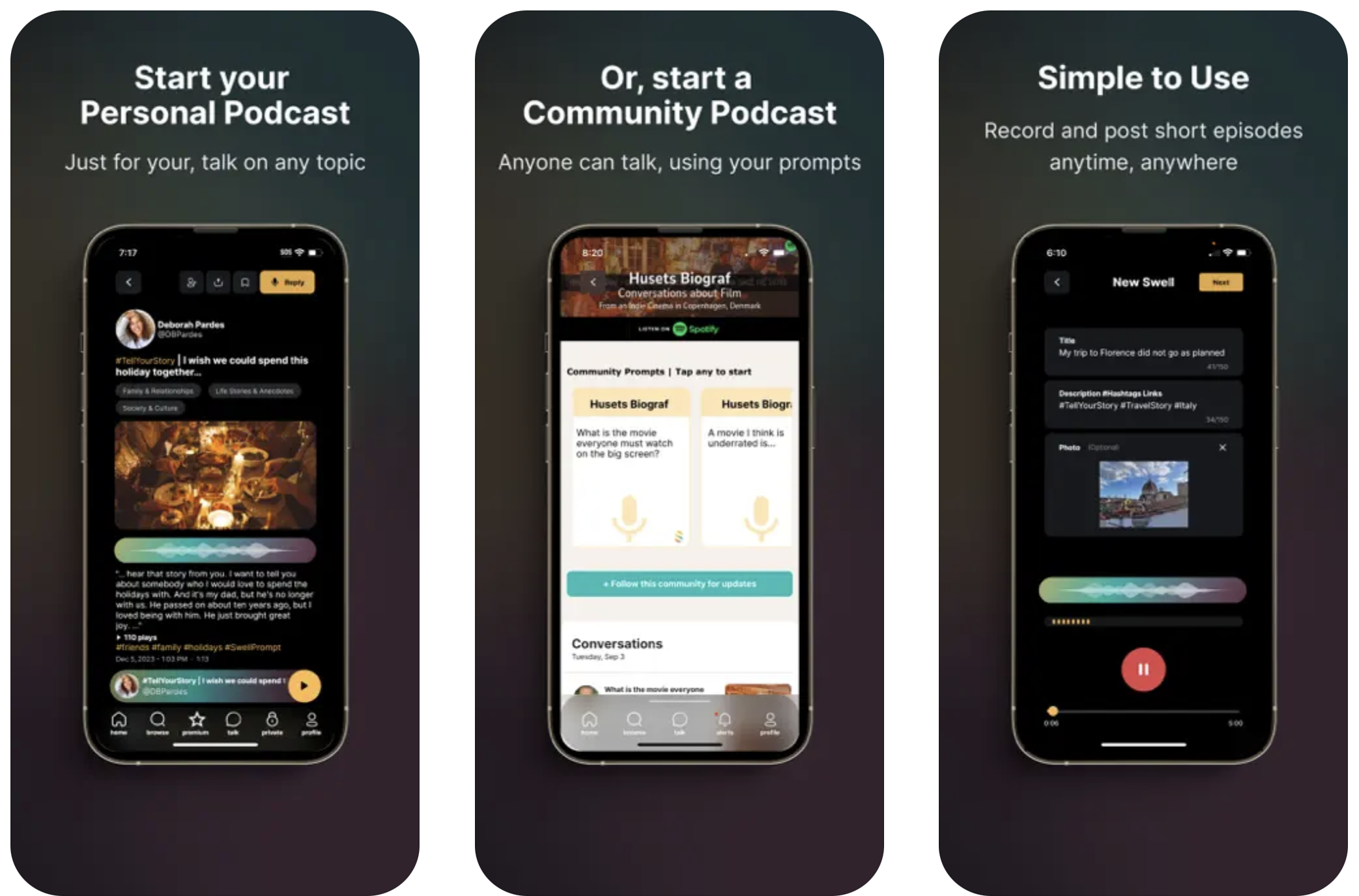 Ich bin überrascht, dass wir Folgendes noch nicht behandelt haben (vielleicht haben wir es auch getan, aber ich habe es nicht gesehen): Swell. Es ist eine App, die Podcasting für jedermann einfach und zugänglich macht. Alles, was Sie brauchen, ist Ihre Stimme und die Swell-App. Im Ernst, es ist so einfach. Nehmen Sie jederzeit und überall auf, posten Sie sie und lassen Sie Ihre Zuhörer Ihnen per Audio antworten. So entstehen unterhaltsame Gespräche und interessante Verbindungen. Sie können auch Fotos, Links und Hashtags hinzufügen und jede Episode ist auf fünf Minuten begrenzt. Es ist zwar interessant, aber es gehört zu den Dingen, die nur funktionieren, wenn die Leute es nutzen. Verdammt, vielleicht werde ich dieses Wochenende einen Swellcast aufnehmen.