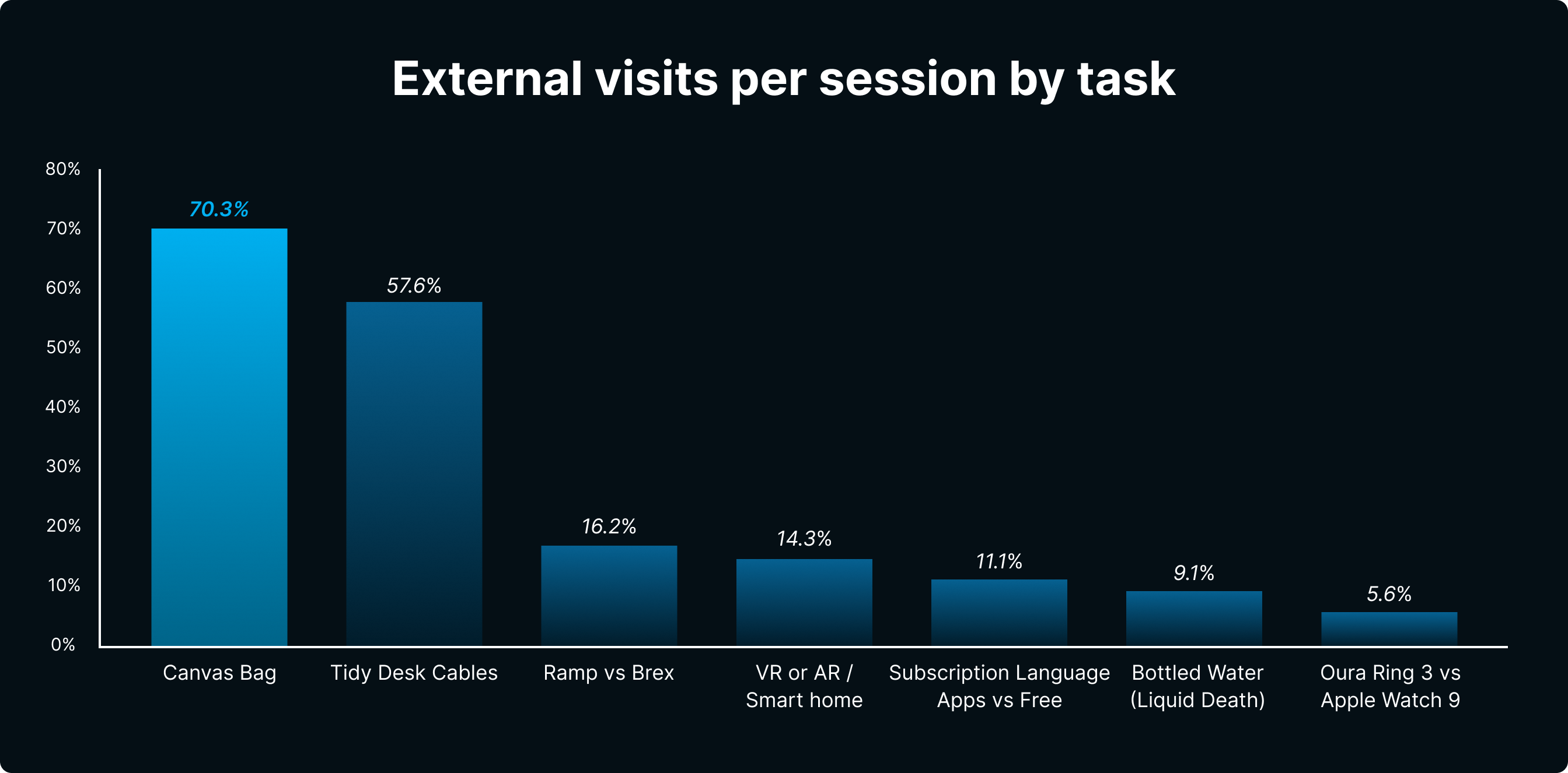 • Vergleichsaufgaben mögen [Oura Ring vs Apple Watch] oder [Ramp vs Brex] hatte nur sehr wenige Klicks (≤ 6 Gesamtsumme über alle Aufgaben).