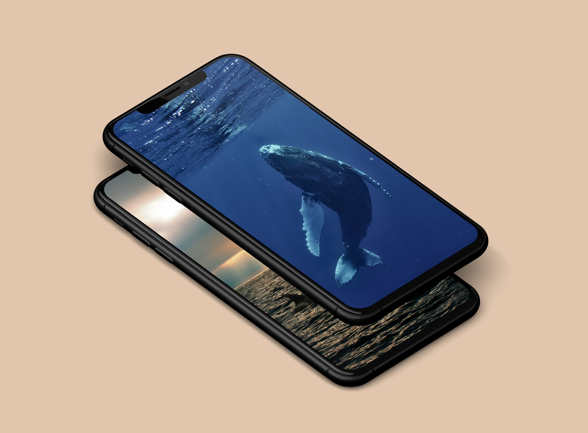 Mein Favorit der Kollektion ist zuerst abgebildet. Das Bild eines Wales, der über die Oberfläche verstoßen wird, ist fast ausschließlich blau. Das volle blaue Bild betont die klassische Farbpalette von Oceans und wird leicht vom schimmernden Oberflächenwasser kontrastiert. Es sorgt für eine großartige Wallpaper mit der Tapete mit der Position der Walanpassung direkt unter der Uhr oder anderen Widgets.