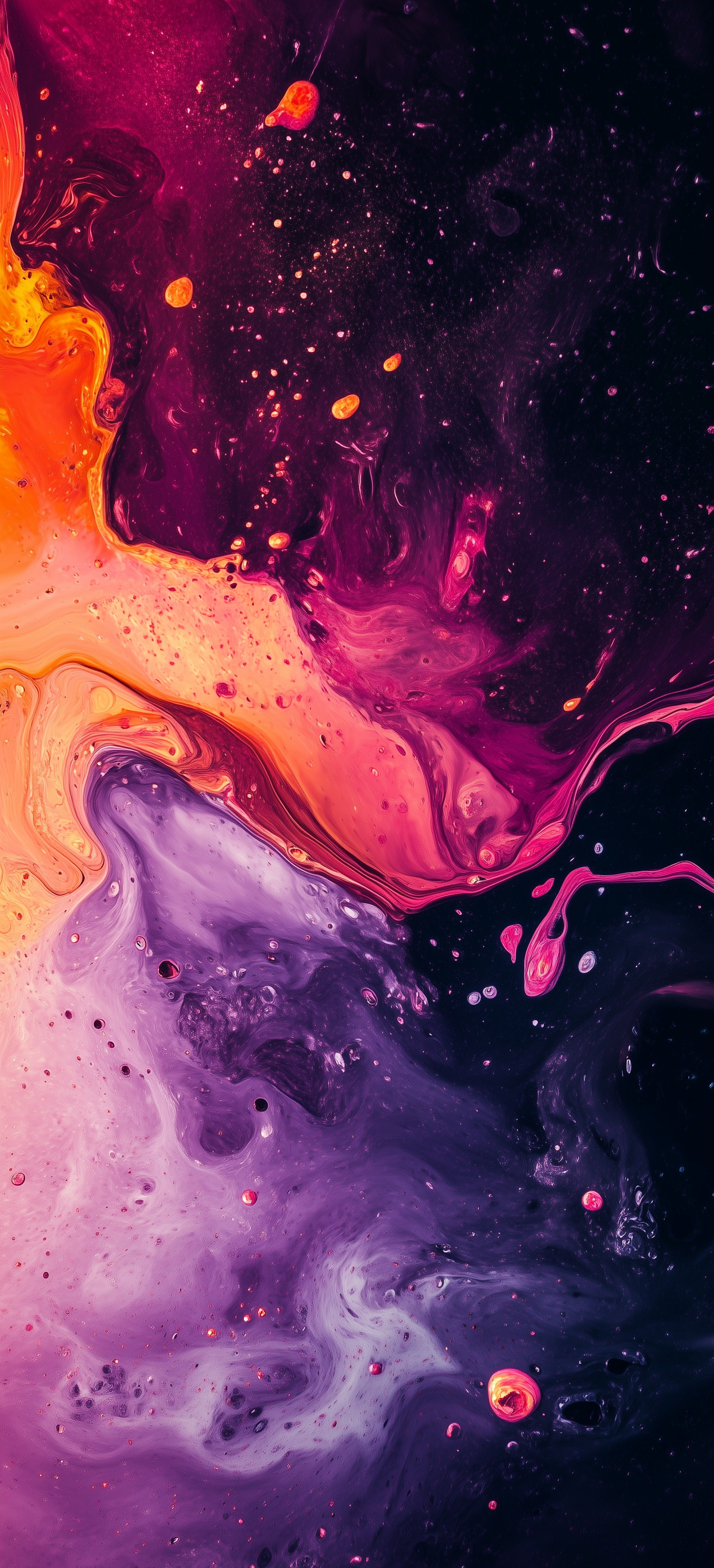 Der Namensgeber der Tapetenkollektion, der Download „Galactic“, wird zuerst in der Sammlung vorgestellt. Galactic, erstellt von @iDeviceArt, dreht sich spiralförmig durch eine Farbpalette, die auf dem OLED-Panel des iPhones erscheint. Das Design sieht fast so aus, als würden mehrere Farbdosen zusammenspritzen. Ich bin fasziniert von der Farbkombination, insbesondere vom Königsblau, das in Lila übergeht, das mit Orange und Rosa kontrastiert. Jede Farbe verleiht dem Erlebnis ihre eigene Tiefe.